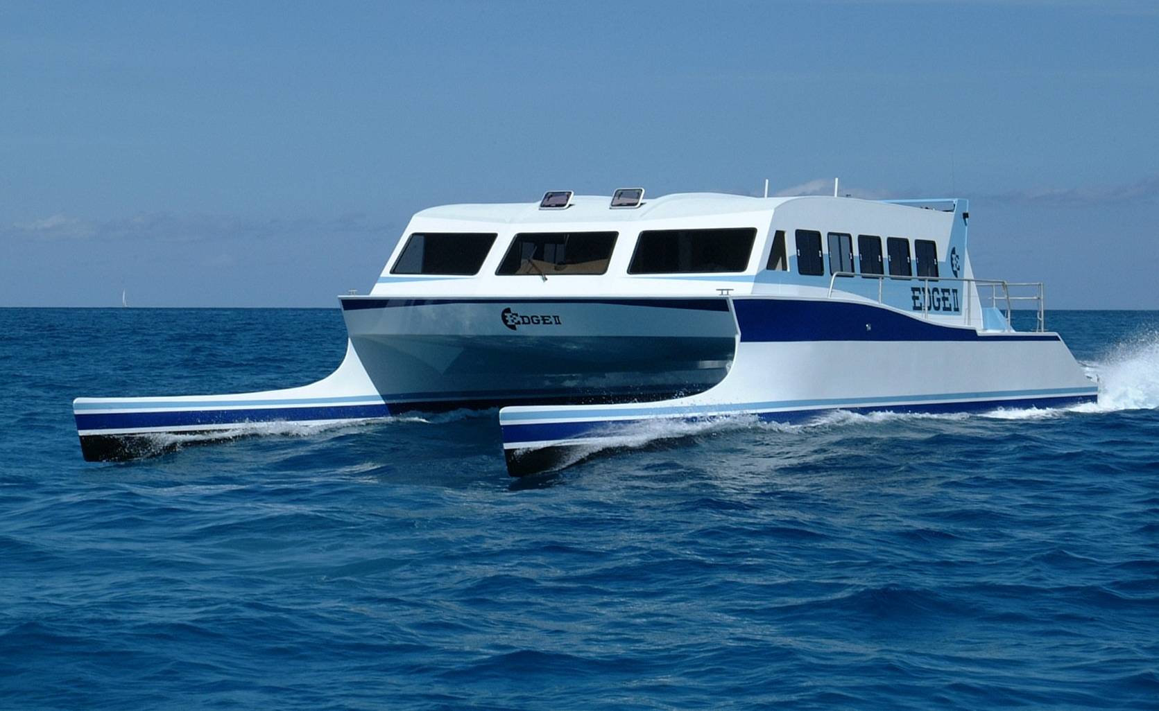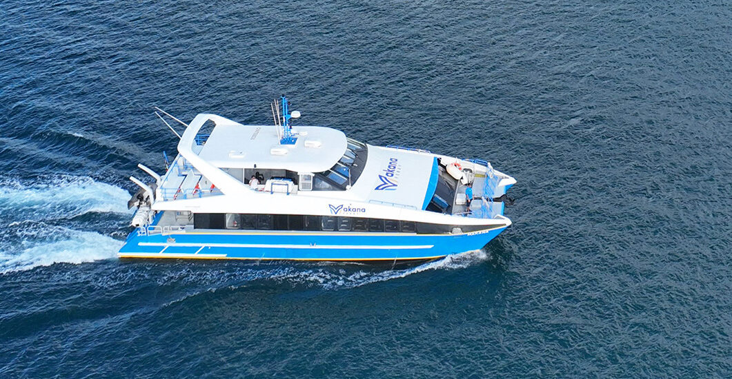 The M/V Makana is a 72' Sabre catamaran fast ferry, capable of carrying 150 passengers across two decks: a main lower deck, and an upper deck with a covered business class area and an open sun deck area. The vessel is fully air conditioned. It has a bar service area and 2 heads for passenger convenience.