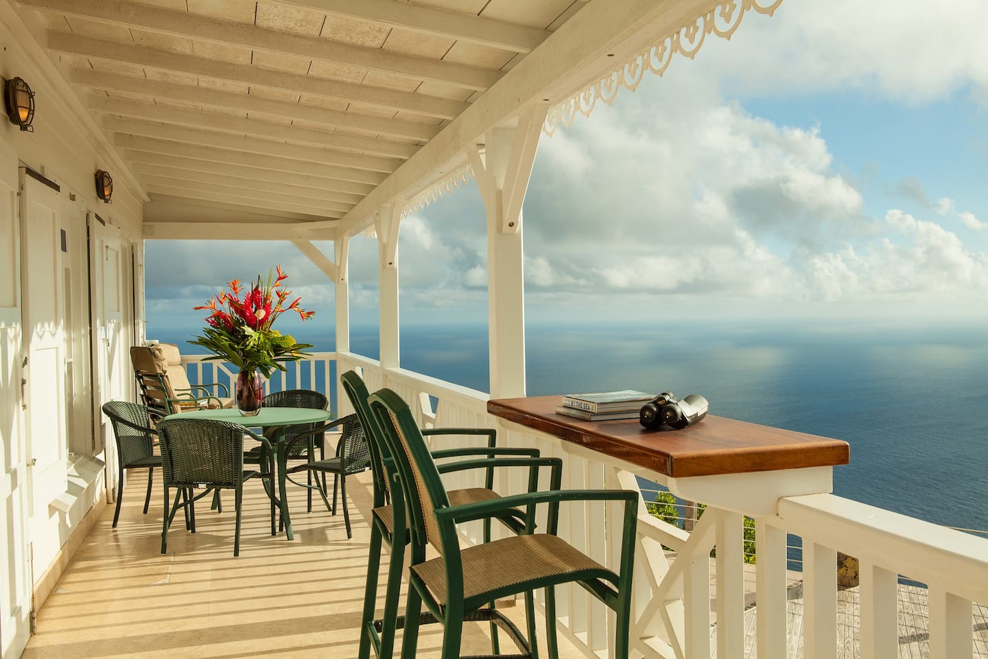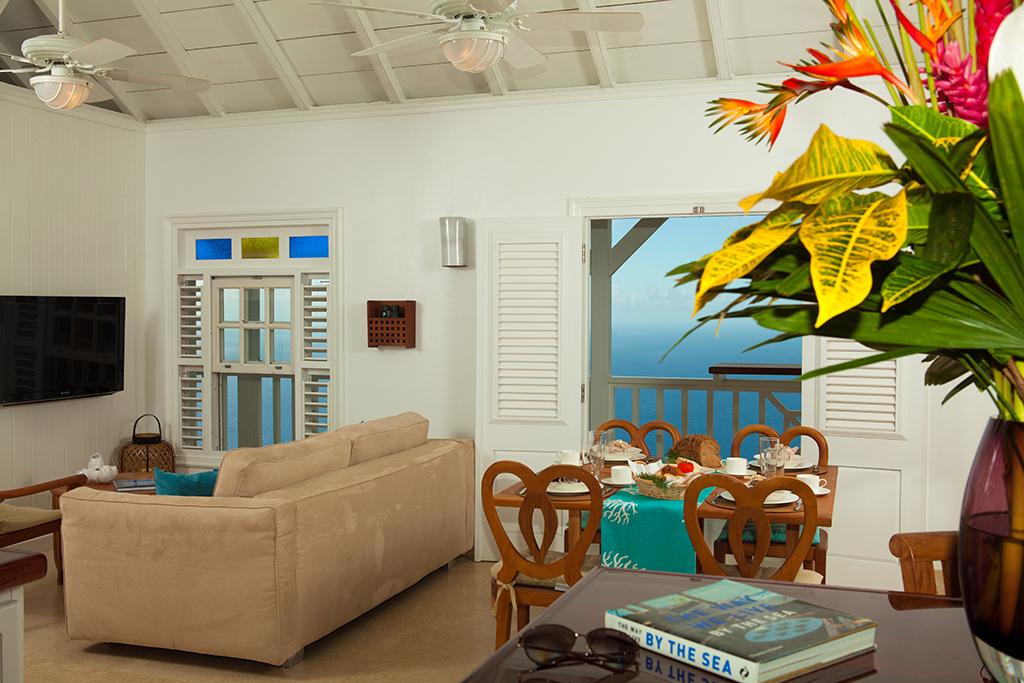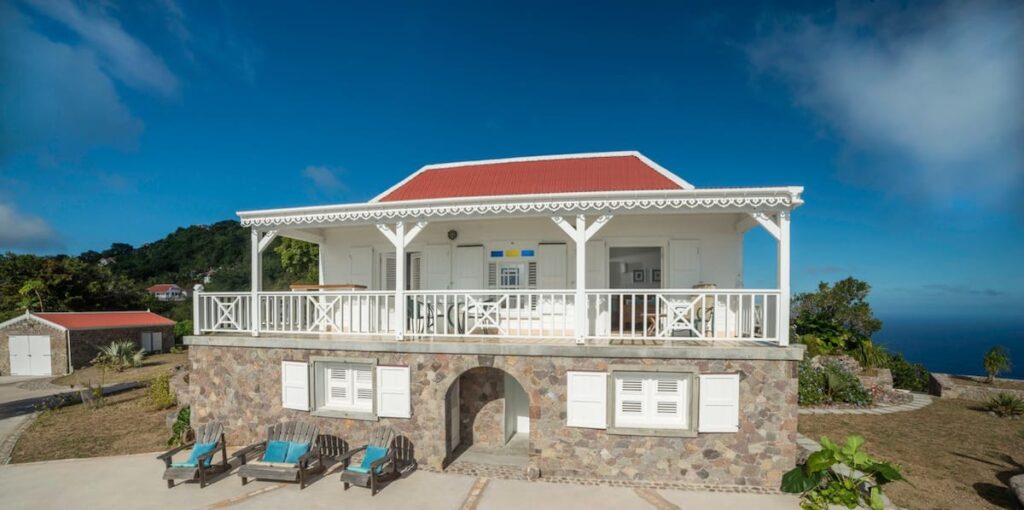 Spyglass is a private villa located on the point at Boobyhill but within an easy stroll into Windwardside shops, restaurants and activities. This villa is a true haven of tranquility and beauty. Spyglass boasts a walkout panoramic veranda and large lower sun deck and patio with extraordinary views of the surrounding islands, Caribbean Sea and Saba. Entertaining is made easy with the rear covered cabana perfect for outdoor grilling, cocktails or conversation. The interior features a large gourmet kitchen, breakfast bar, dining and living area, 2 bedrooms and 2 full generously sized baths. The villa is equipped with all the modern comforts one would expect.